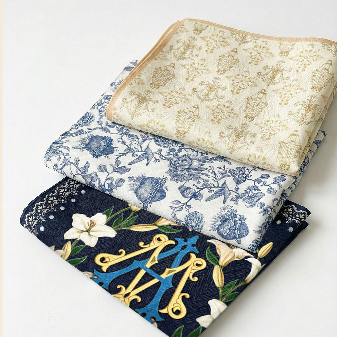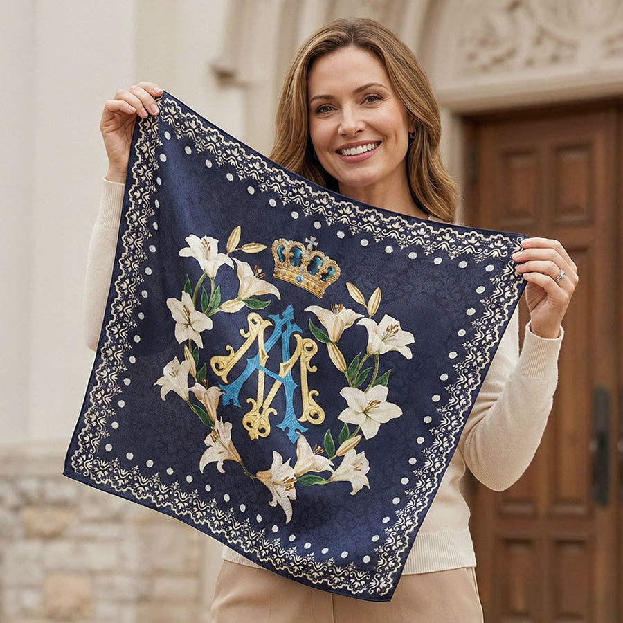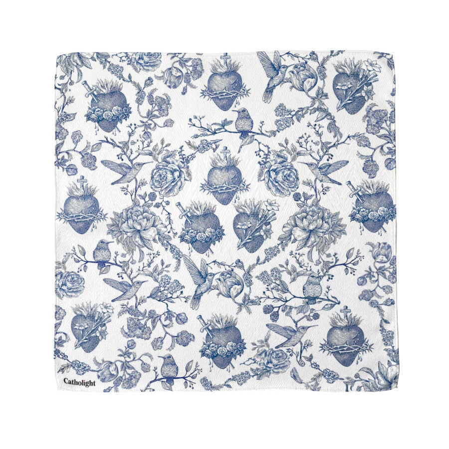 Catholight Sacred Elegance: Blue and White Devotion Square Scarf