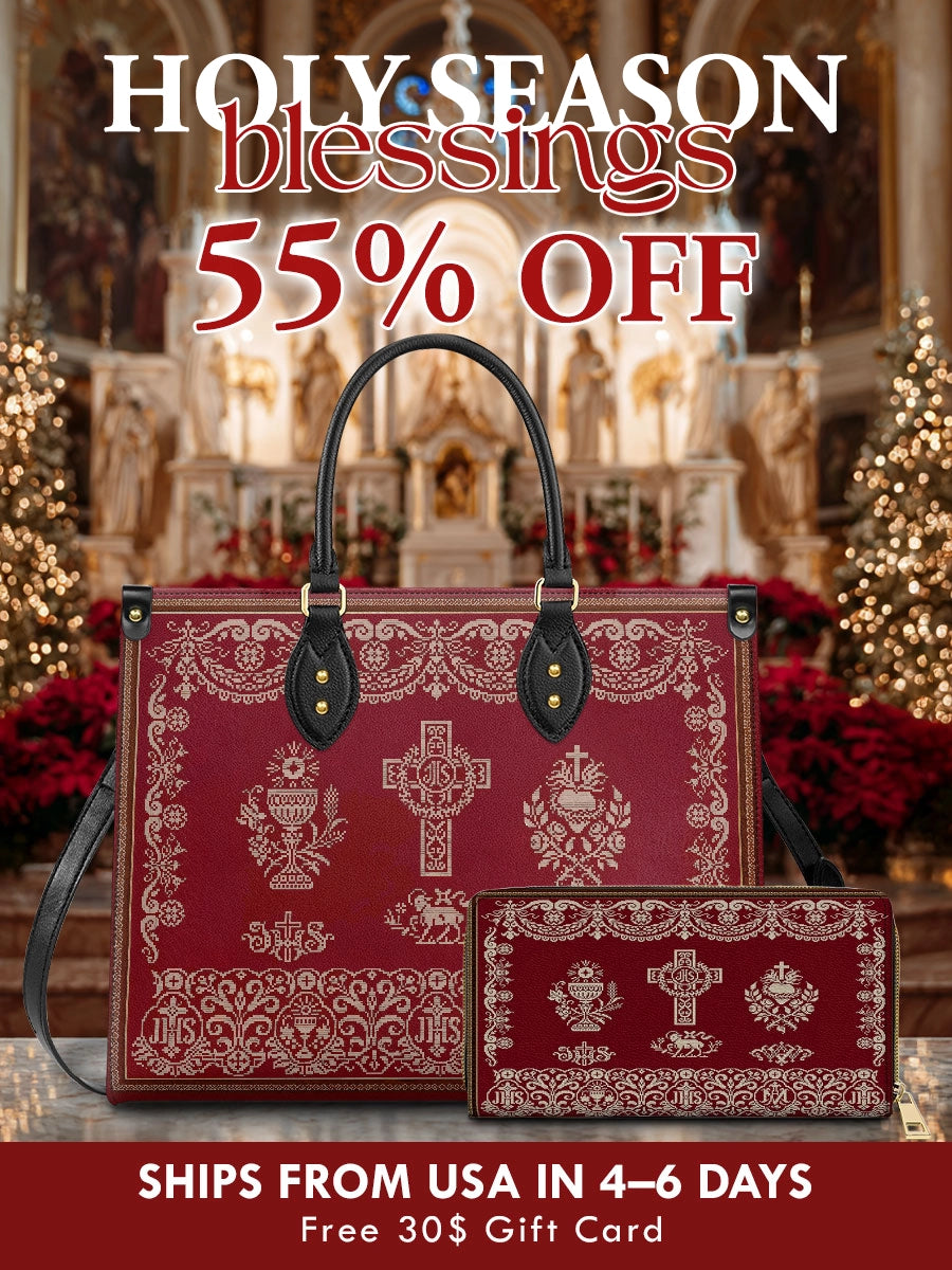 The structured handbag offers timeless style and practical space for everyday use, while the matching wallet keeps your essentials close, with grace in every detail. Whether you're headed to church, brunch, or a quiet retreat, this faithful pairing walks with you.