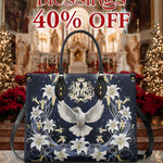 This leather bag is not just an accessory but a meaningful testament to faith and elegance. Whether carried to church, cherished as a keepsake, or given as a gift, it serves as a daily reminder of the peace and light of the Holy Spirit.