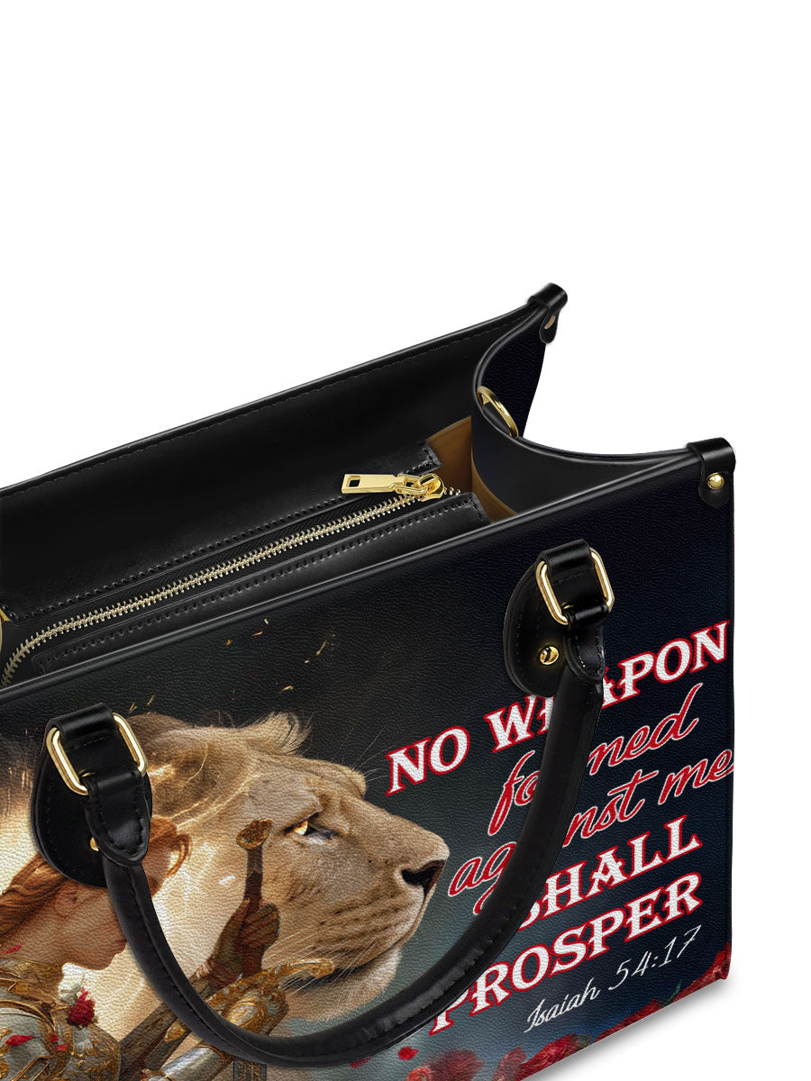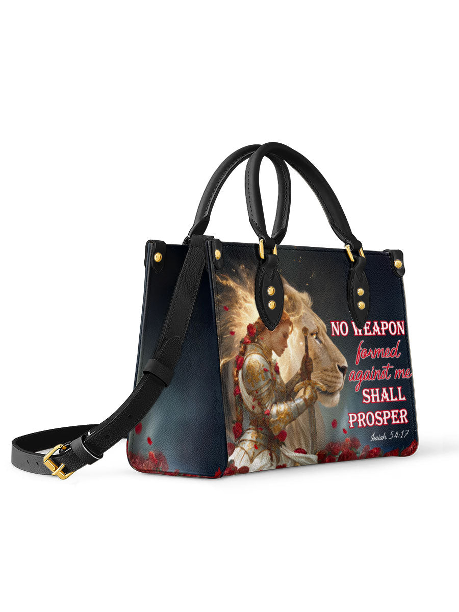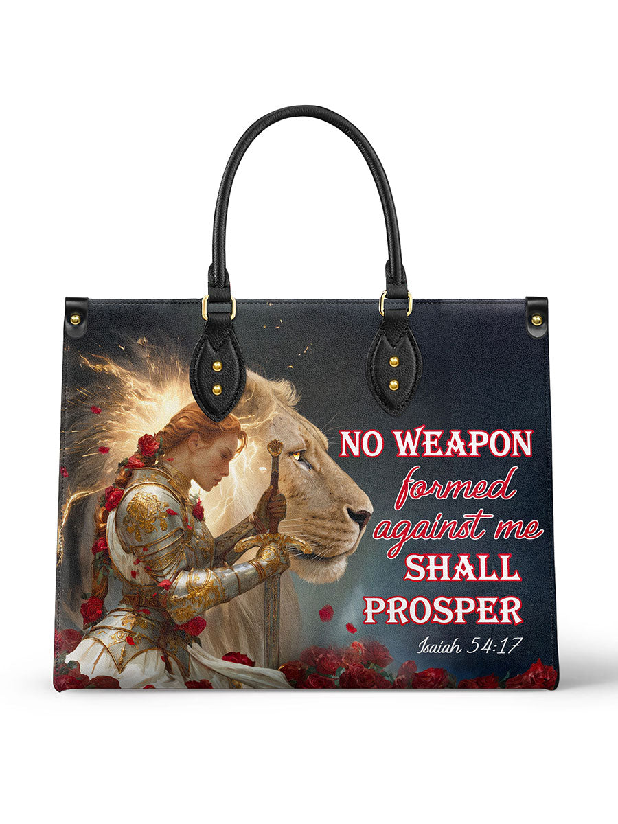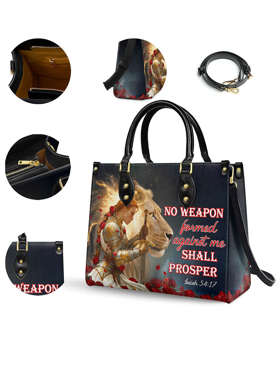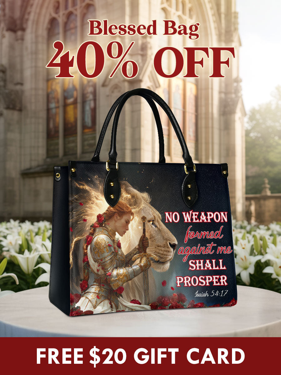 This Strength Through His Promise Leather Bag captures the bold spirit of Isaiah 54:17, bringing to life the image of a prayerful warrior and the majestic lion, symbol of courage and divine guardianship. The deep, dramatic tones and radiant light reflect the assurance that faith conquers fear.