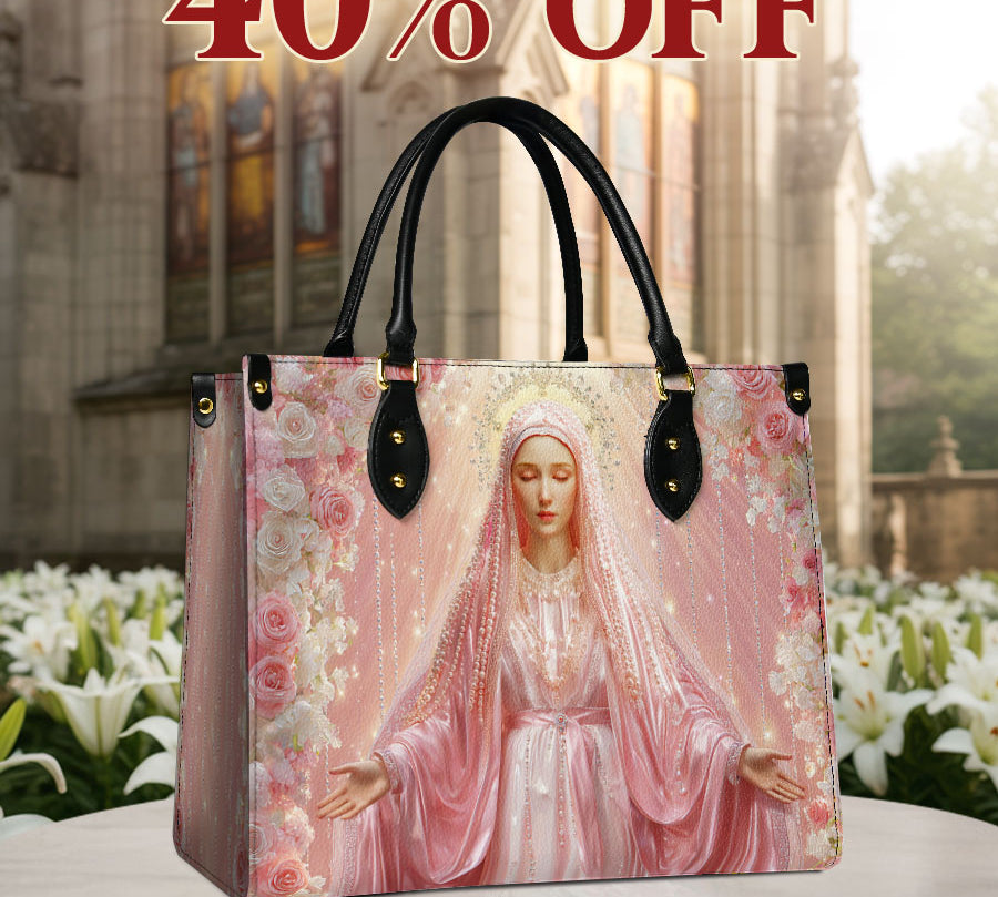 Catholight Divine Mother’s Embrace Leather Tote Bag