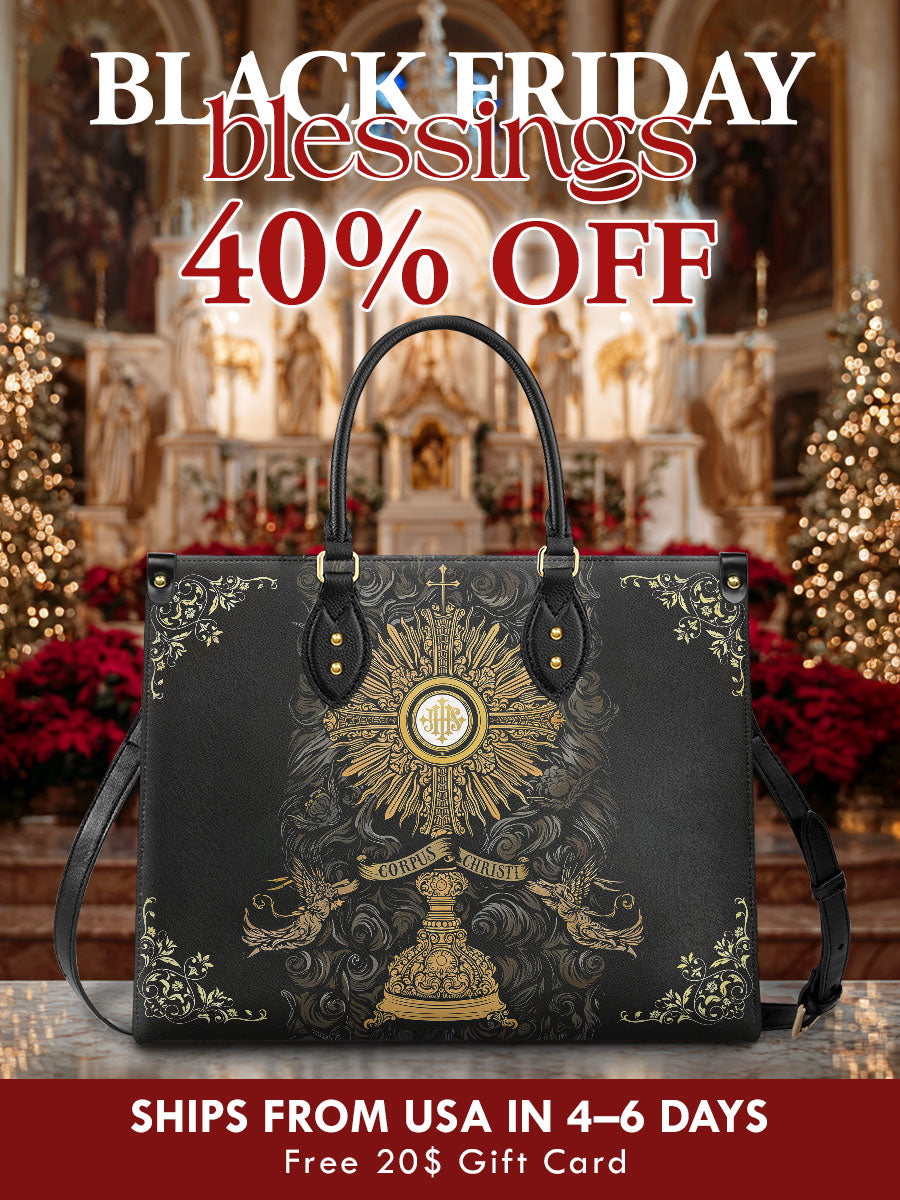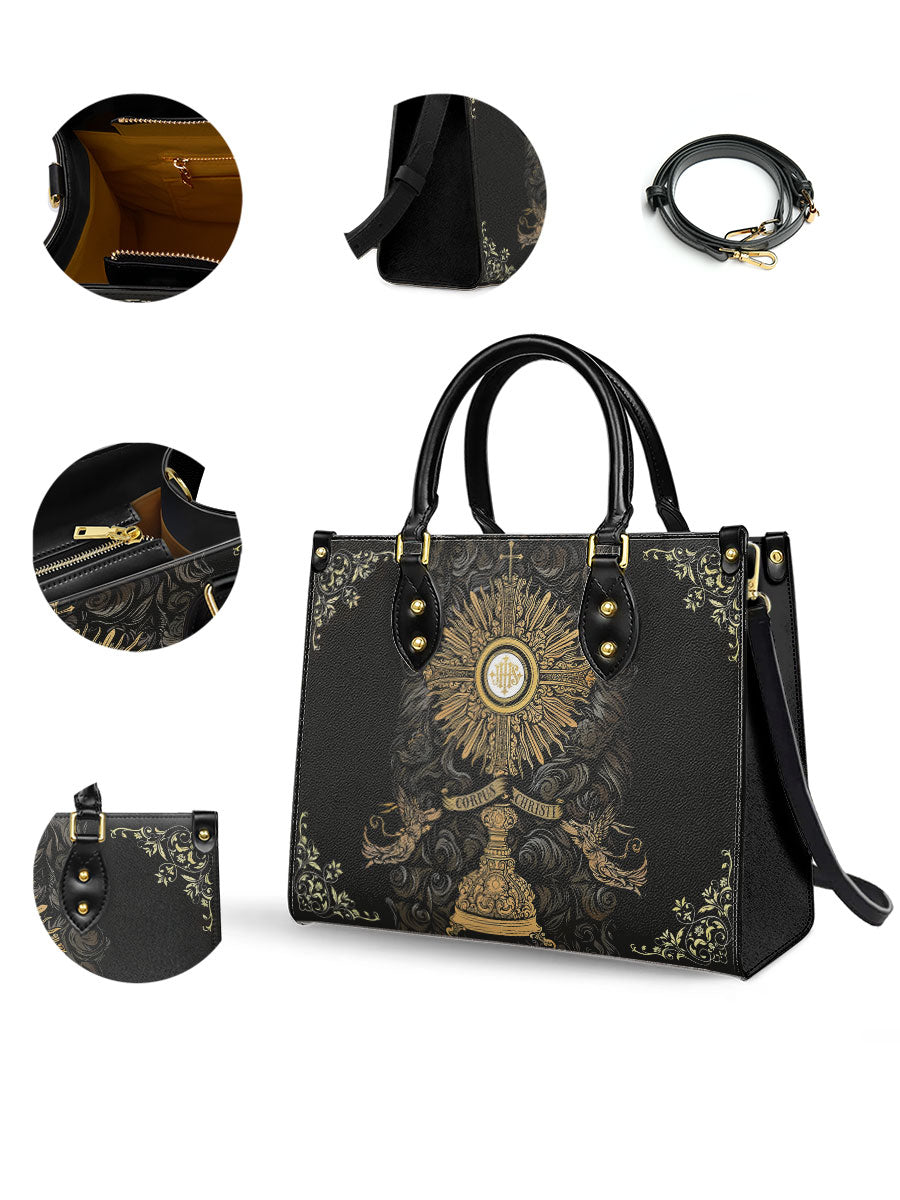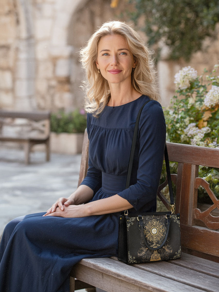 Whether as a thoughtful gift or a personal treasure, "The Corpus Christi Elegance" bag is perfect for those who value the beauty of their faith. Whether attending Mass, participating in religious events, or going about your day, this bag elegantly combines devotion and fashion in a truly timeless way.