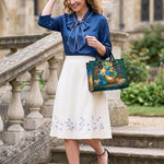 This radiant handbag captures the Holy Nativity — Mary and Joseph gazing upon the newborn Christ beneath the Star of Bethlehem, surrounded by the humble beauty of creation. Rendered in timeless stained glass artistry, the scene reflects peace, devotion, and the miracle of God’s love made flesh.
