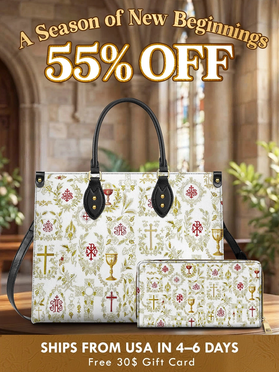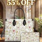 This elegant set features delicately illustrated Christian symbols — crosses, chalices, lilies, doves, and crowns — a visual language of devotion and sacred tradition. Designed to accompany women of faith, it brings meaning to every step.