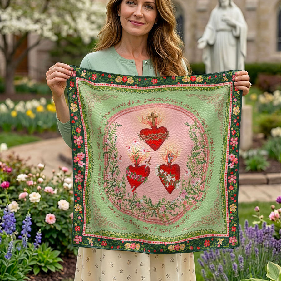 Catholight faith-inspired square scarves for prayer and everyday wear — mix & match any designs you love. Free items are automatically applied at checkout, no code needed.