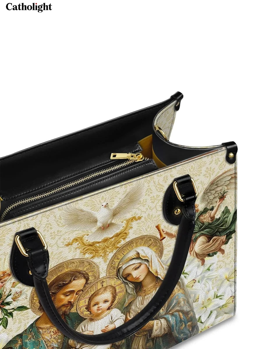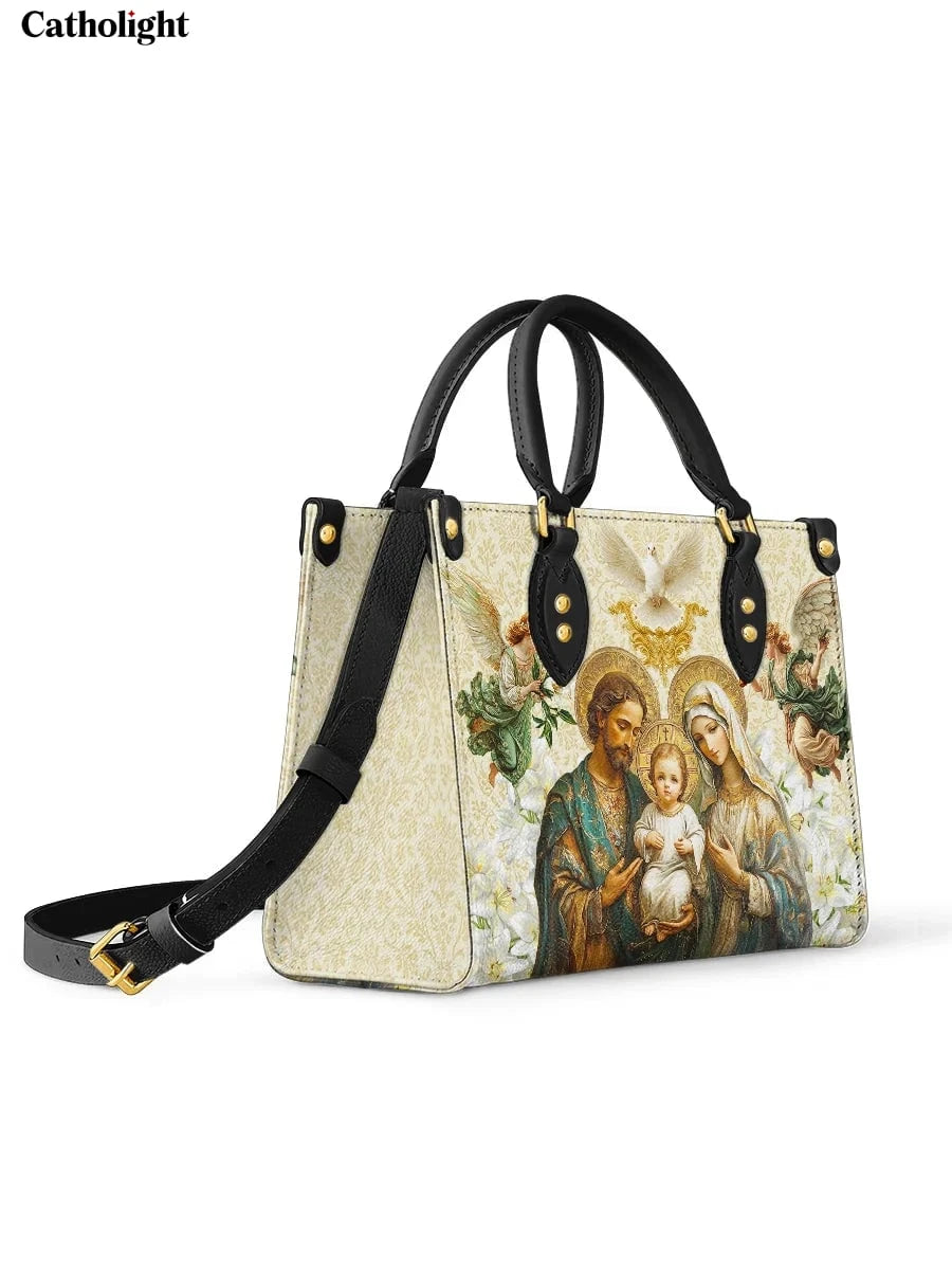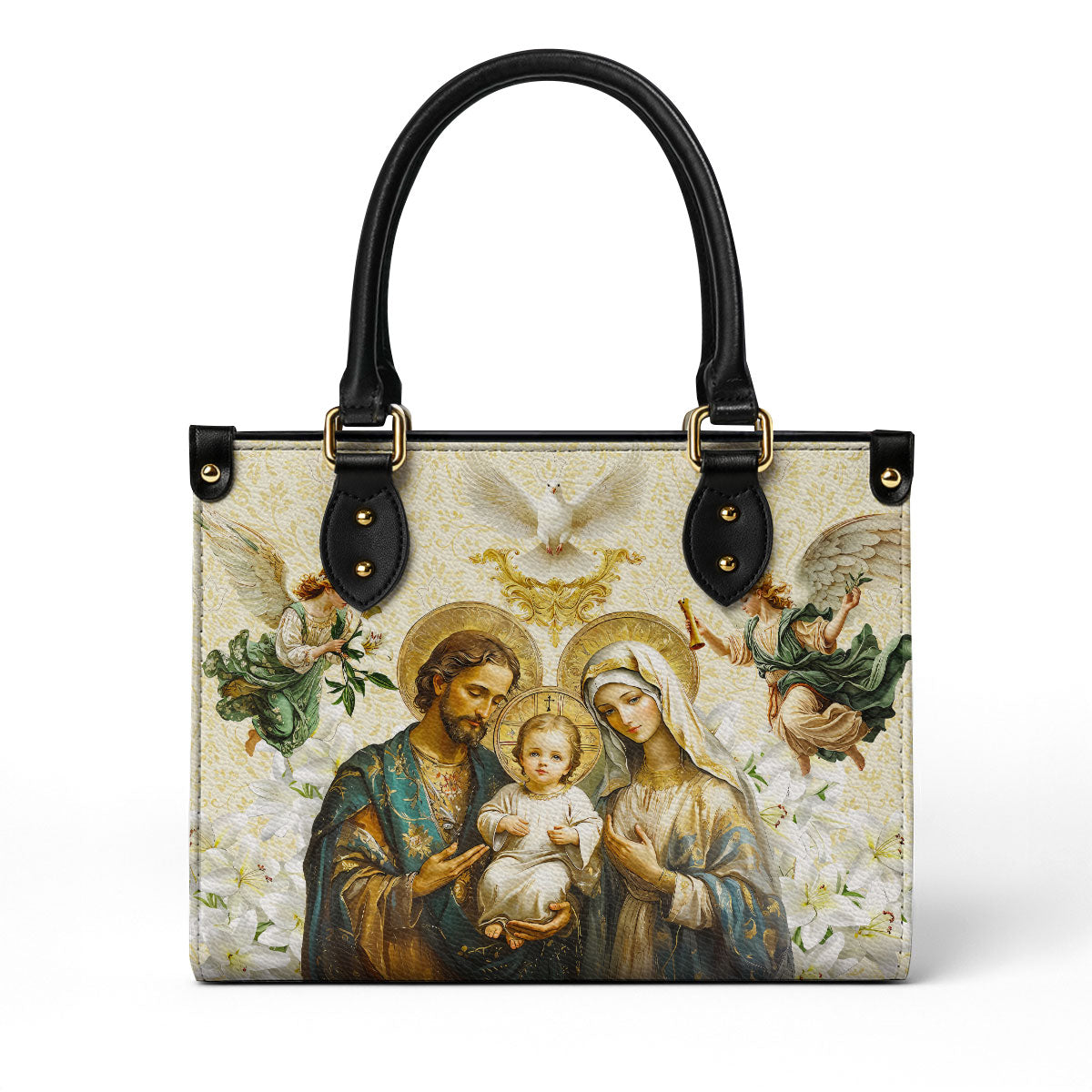 この精巧なレザーバッグは、天使と繊細なユリに囲まれた聖家族—イエス、マリア、ヨセフ—の美しい描写を特徴としています。豊かな象徴性と穏やかな色合いは、神の愛、保護、そして団結の感覚を呼び起こします。作品の輝かしく、空気のような雰囲気は、静けさと希望の感情を招き、聖家族の神聖な絆を思い出させる完璧なアイテムとなっています。