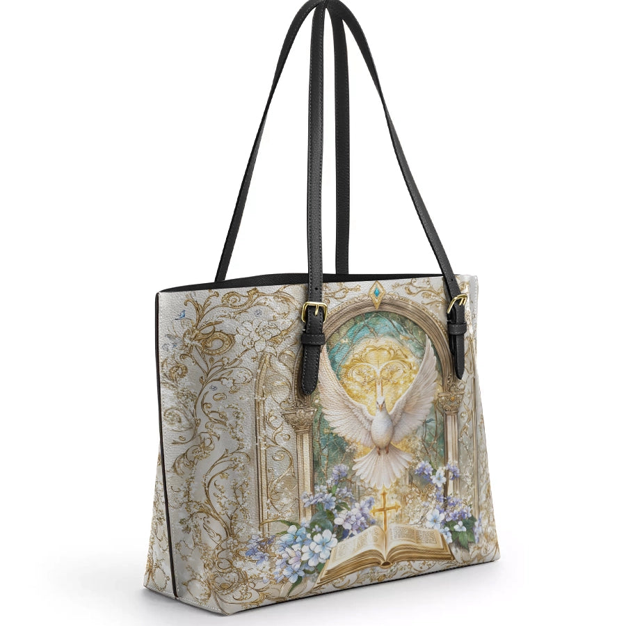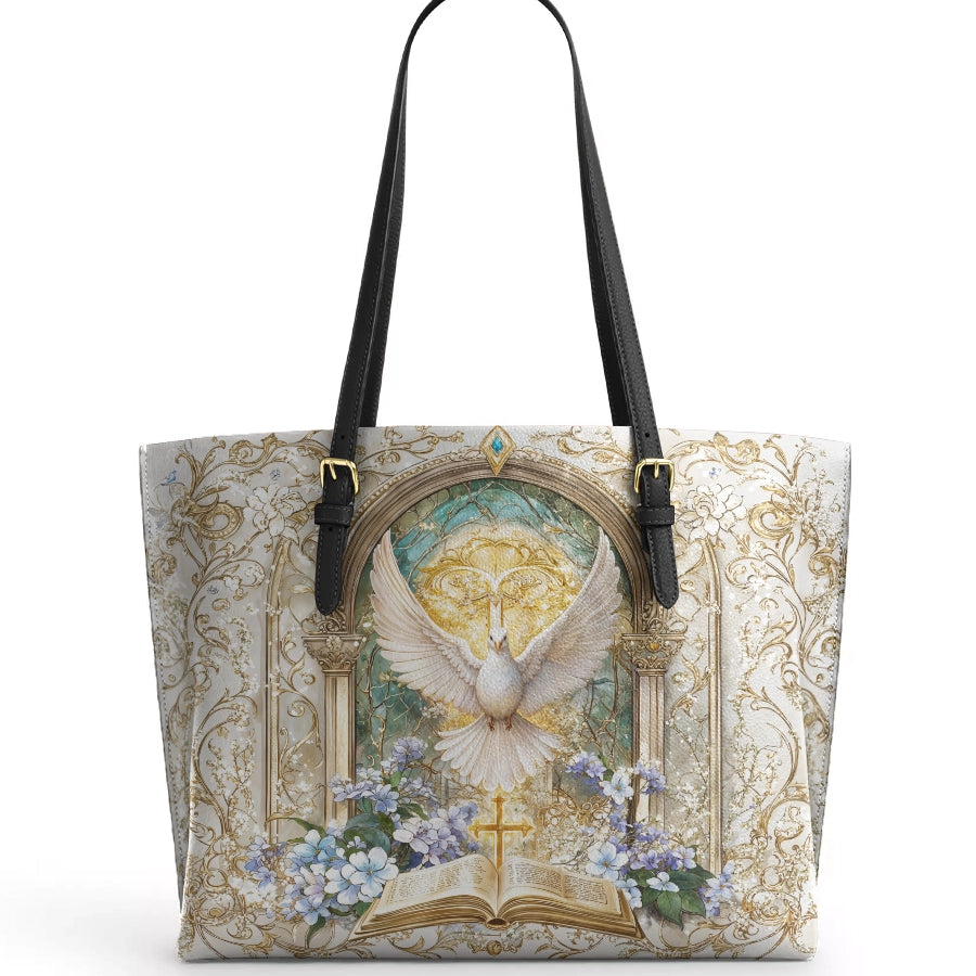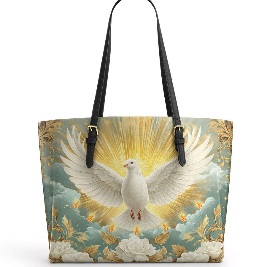 Catholight The Holy Spirit and Lily Devotional Leather Tote Bag
