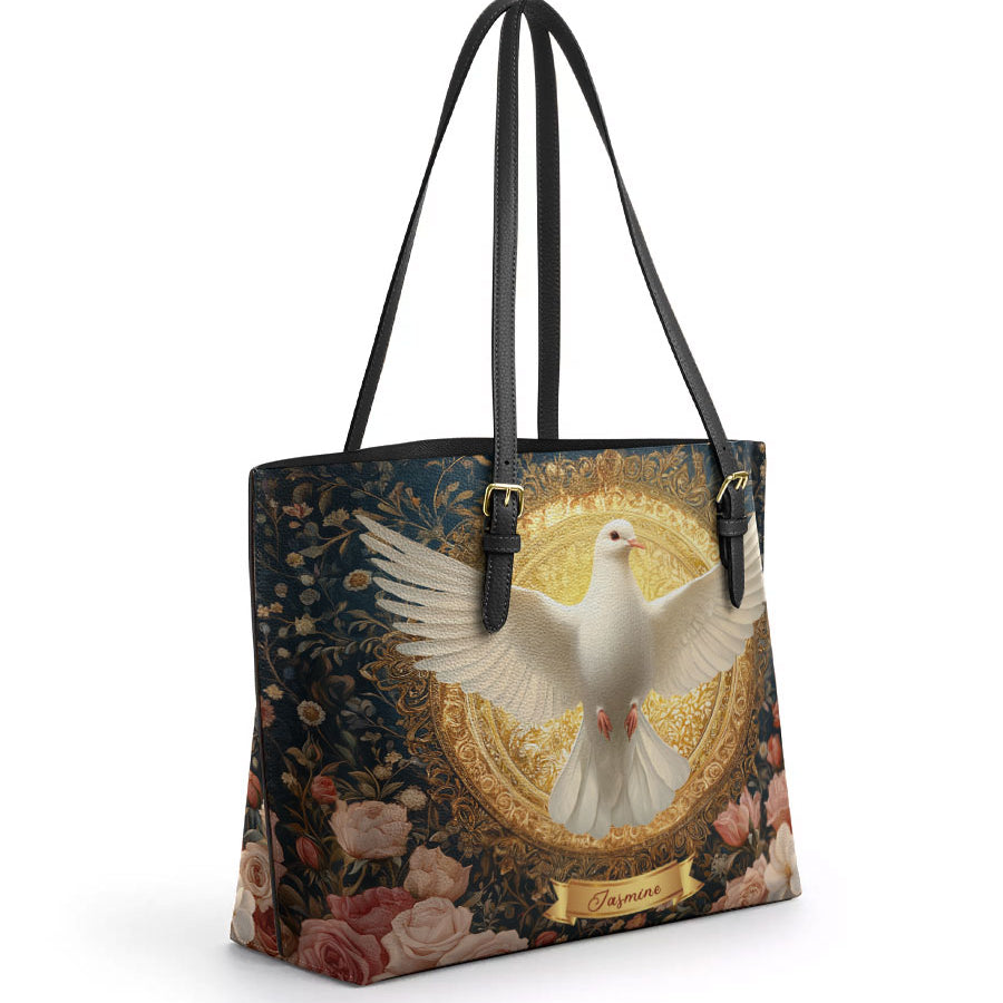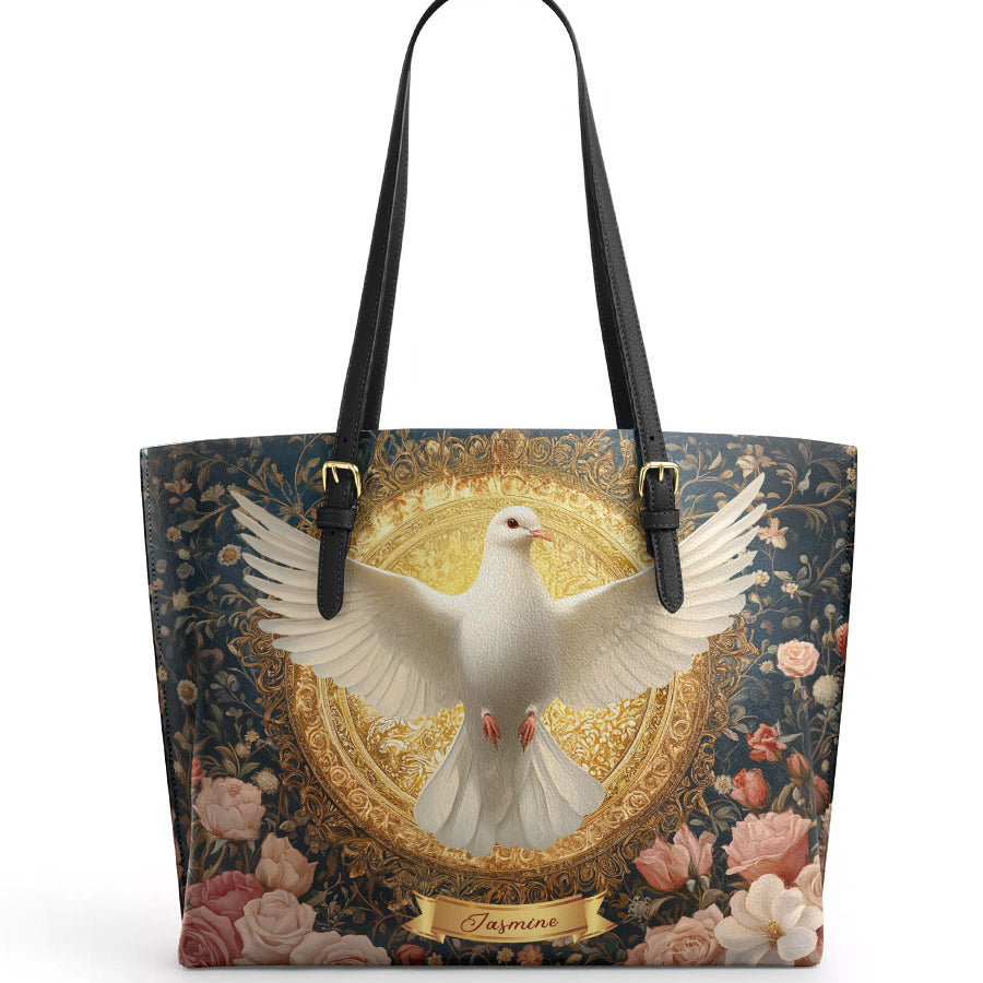 Catholight Dove of Eternal Light Personalized Leather Tote Bag