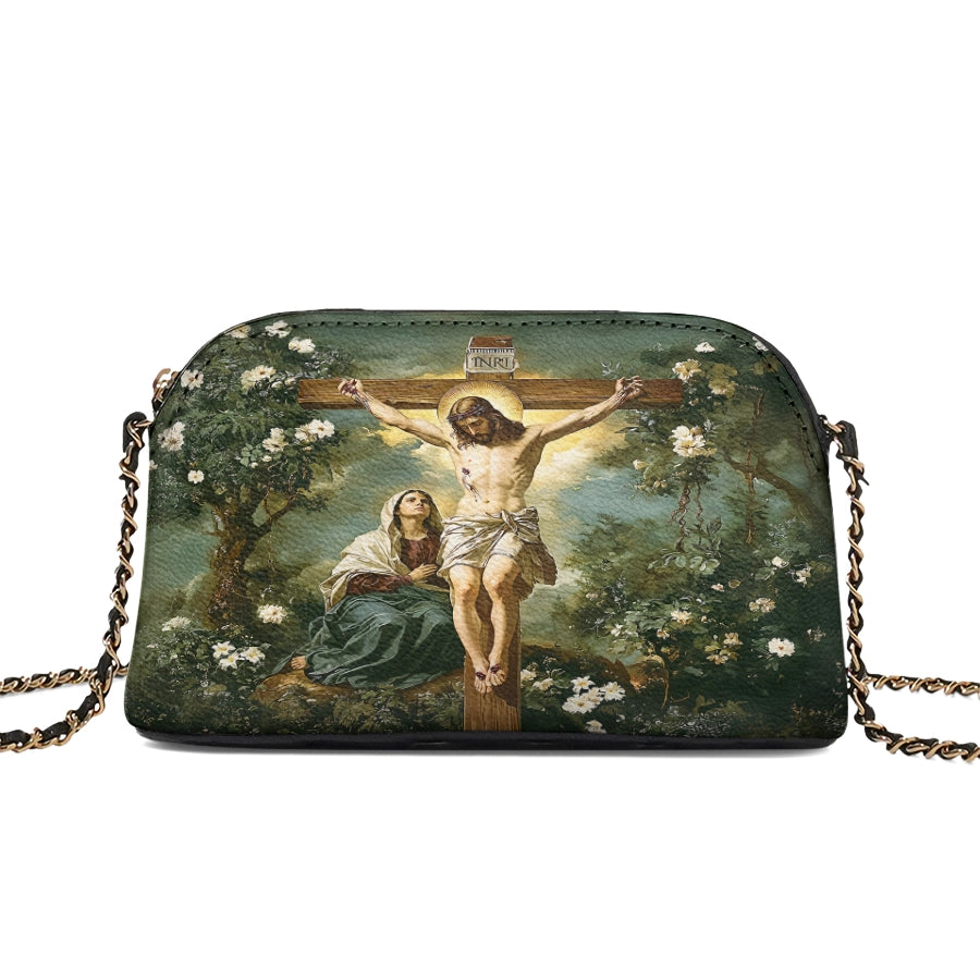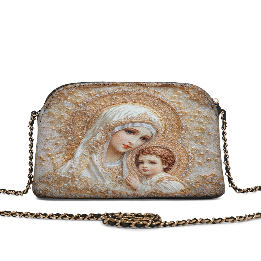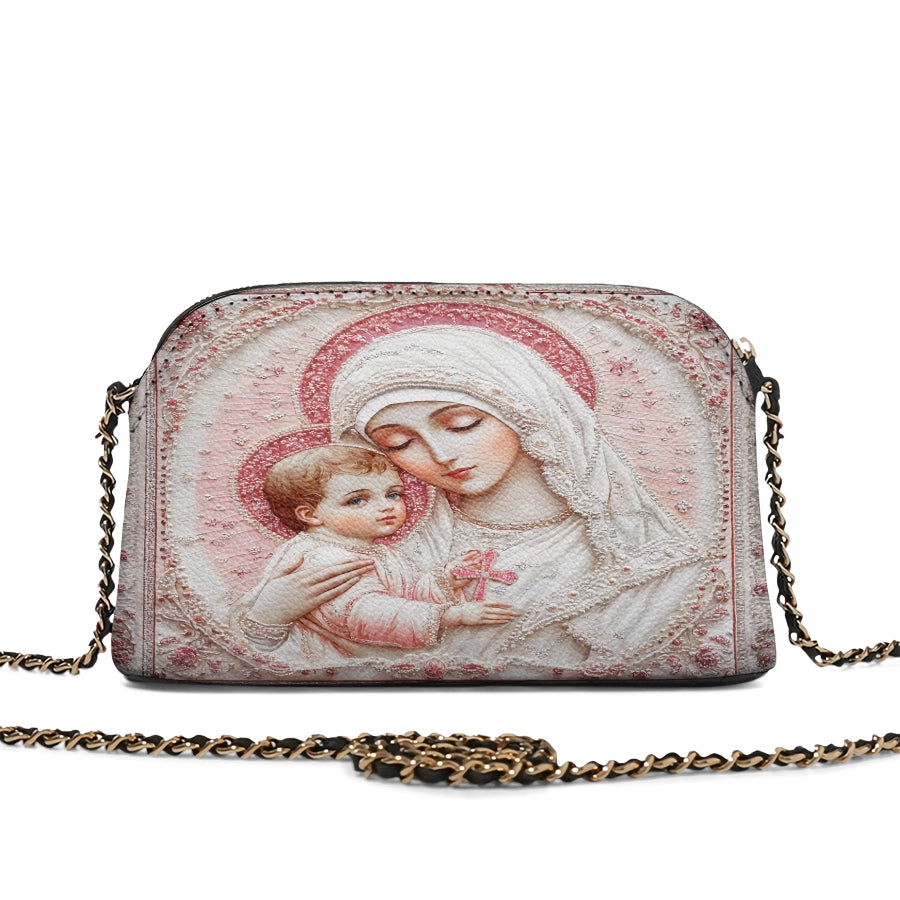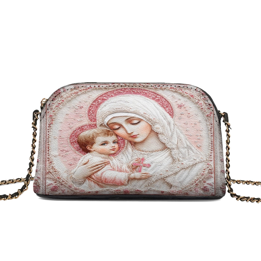 Catholight Sacred Serenity: The Madonna’s Tender Embrace Leather Crossbody Bag