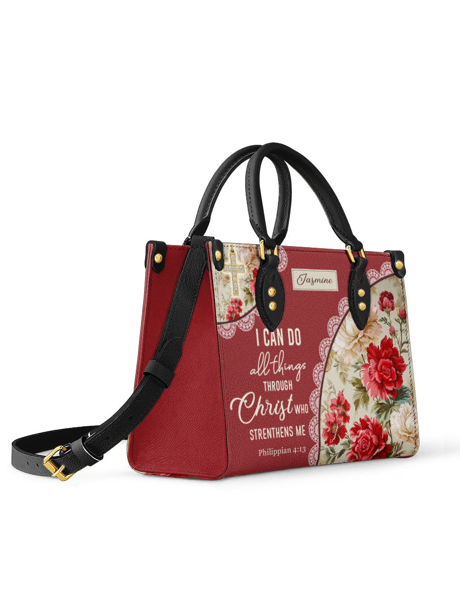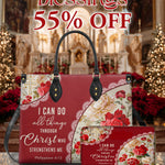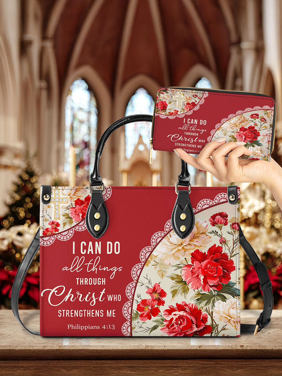The structured handbag offers elegance and ample space for your daily journey, while the matching wallet keeps your essentials secure and organized. Together, they serve as both practical companions and daily affirmations of the strength found in Christ.