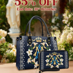 The structured handbag pairs elegance with function, while the matching wallet keeps your essentials close — both honoring the beauty of faith in every detail.