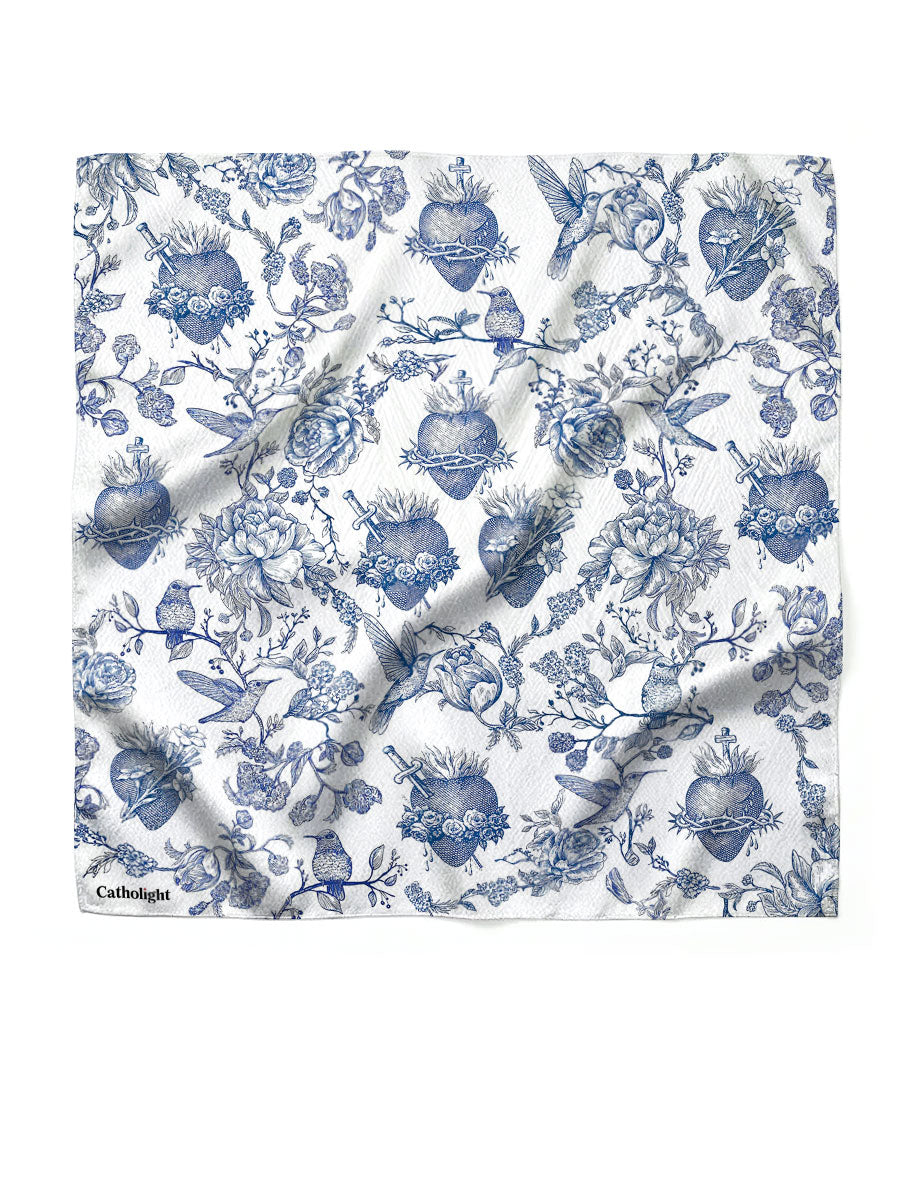 Catholight Sacred Elegance: Blue and White Devotion Square Scarf