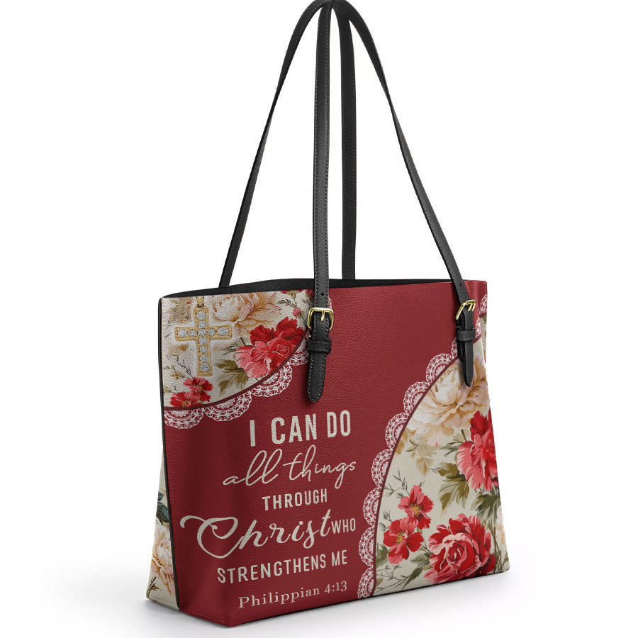 Catholight The Ave Maria Pattern Leather Tote Bag