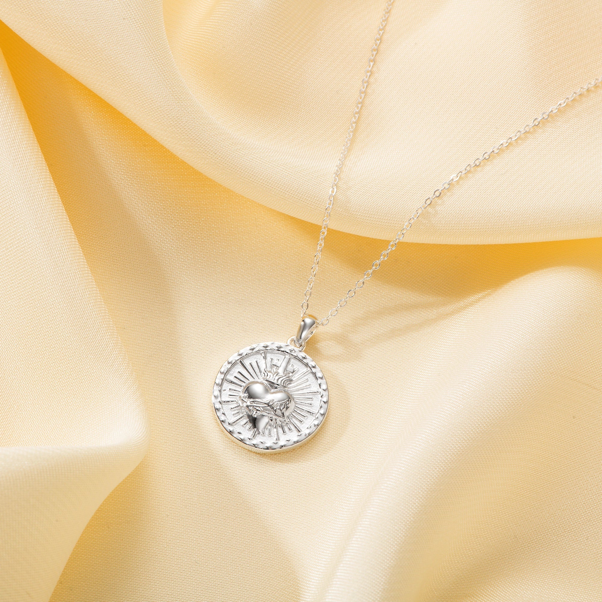 Catholight Sacred Heart of Jesus & Cross Protector Necklace in Sterling Silver