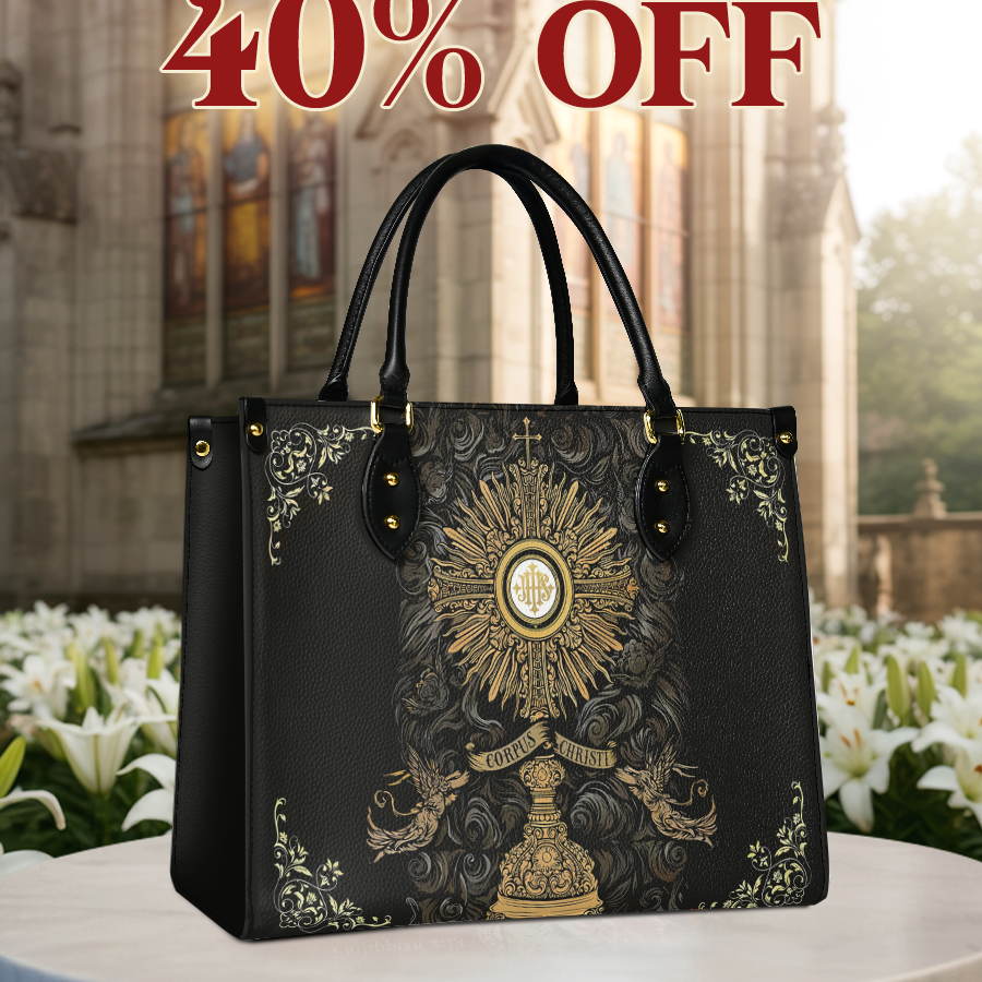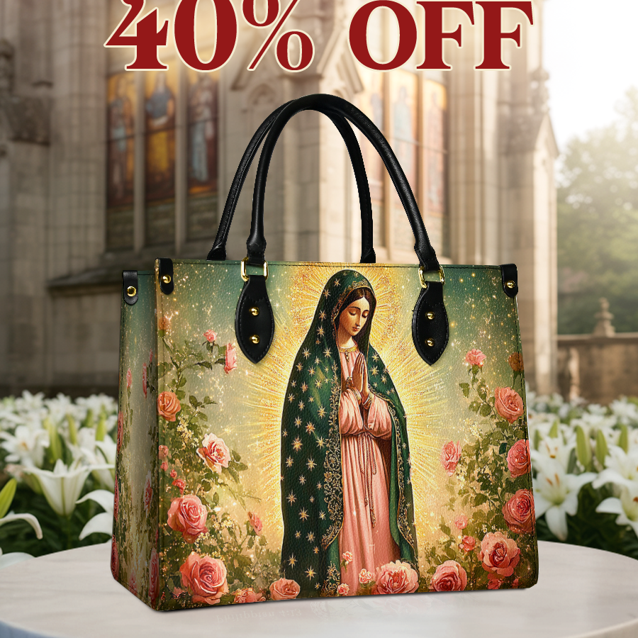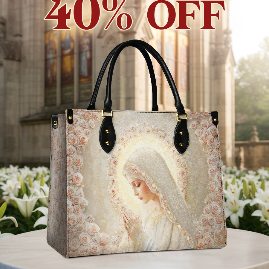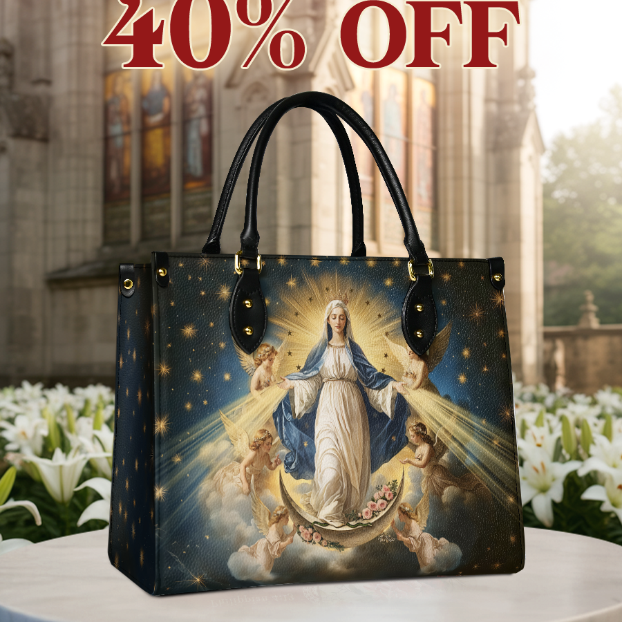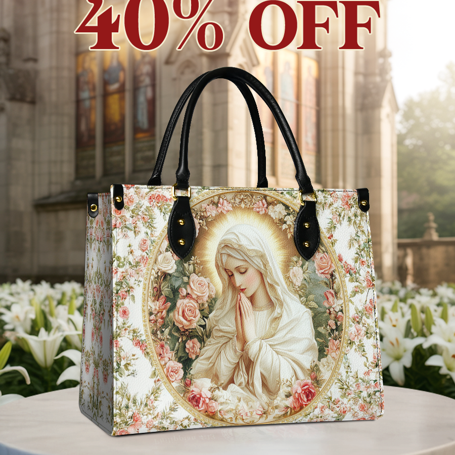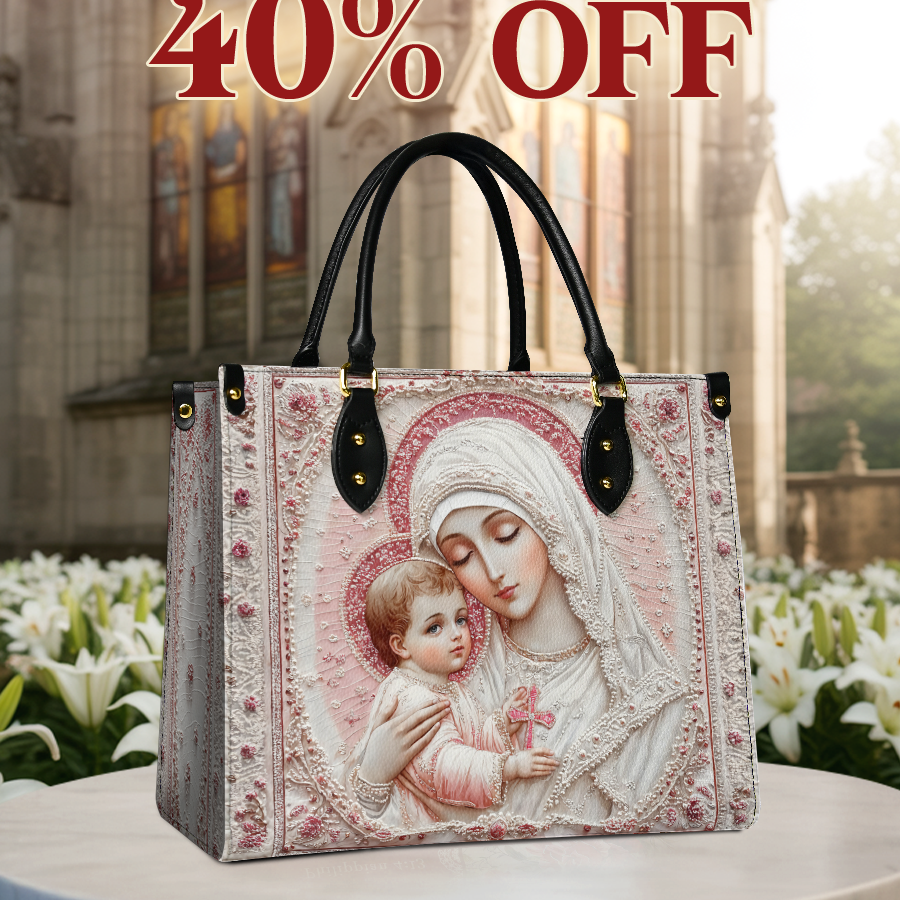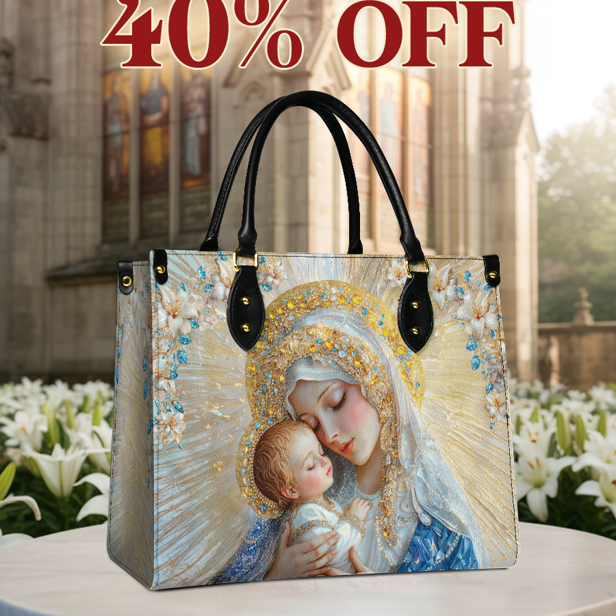 Catholight Sacred Serenity: The Madonna’s Tender Embrace Leather Bag